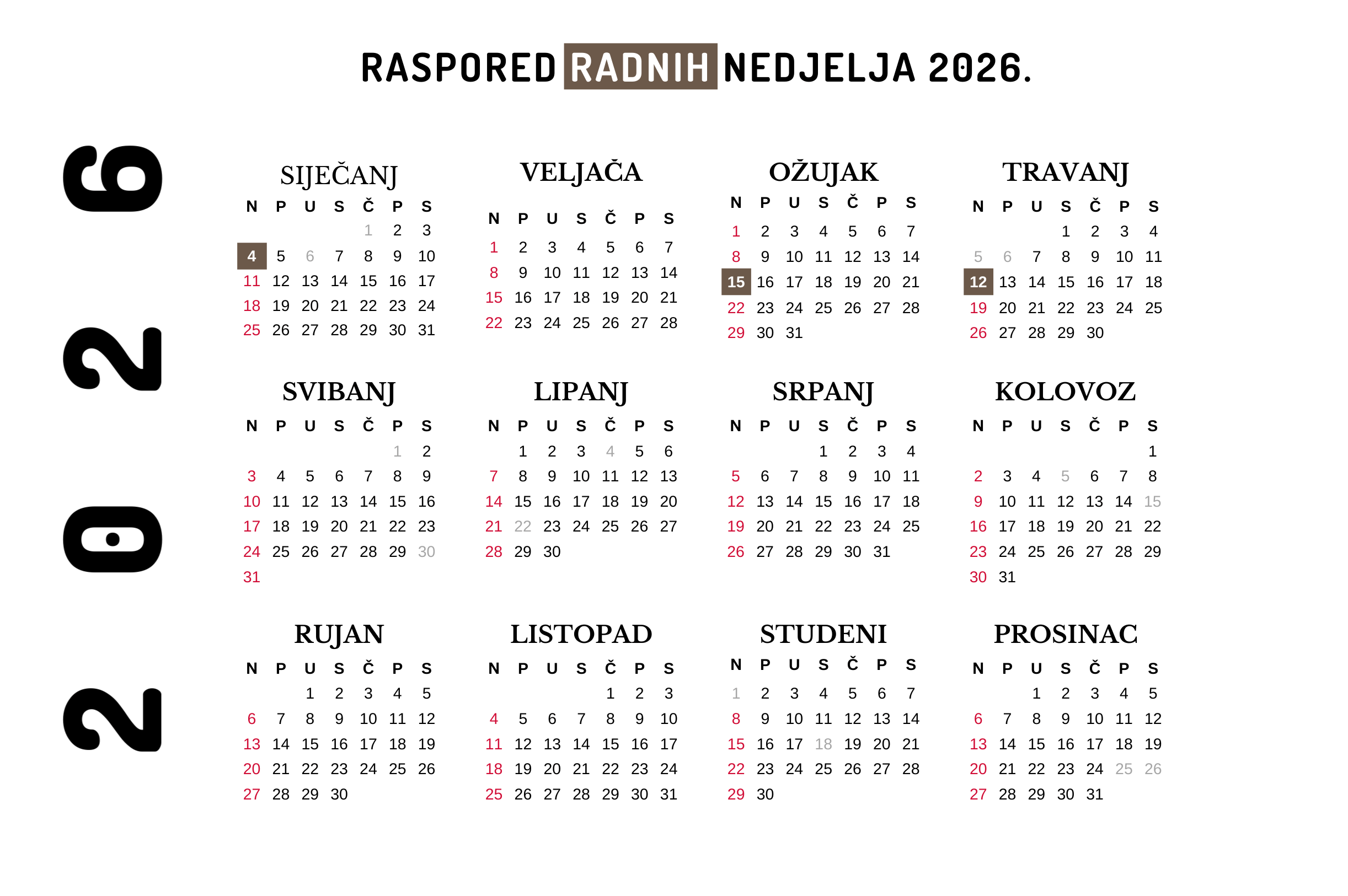 Raspored radnih nedjelja nalazi se u tablici na dnu stranice