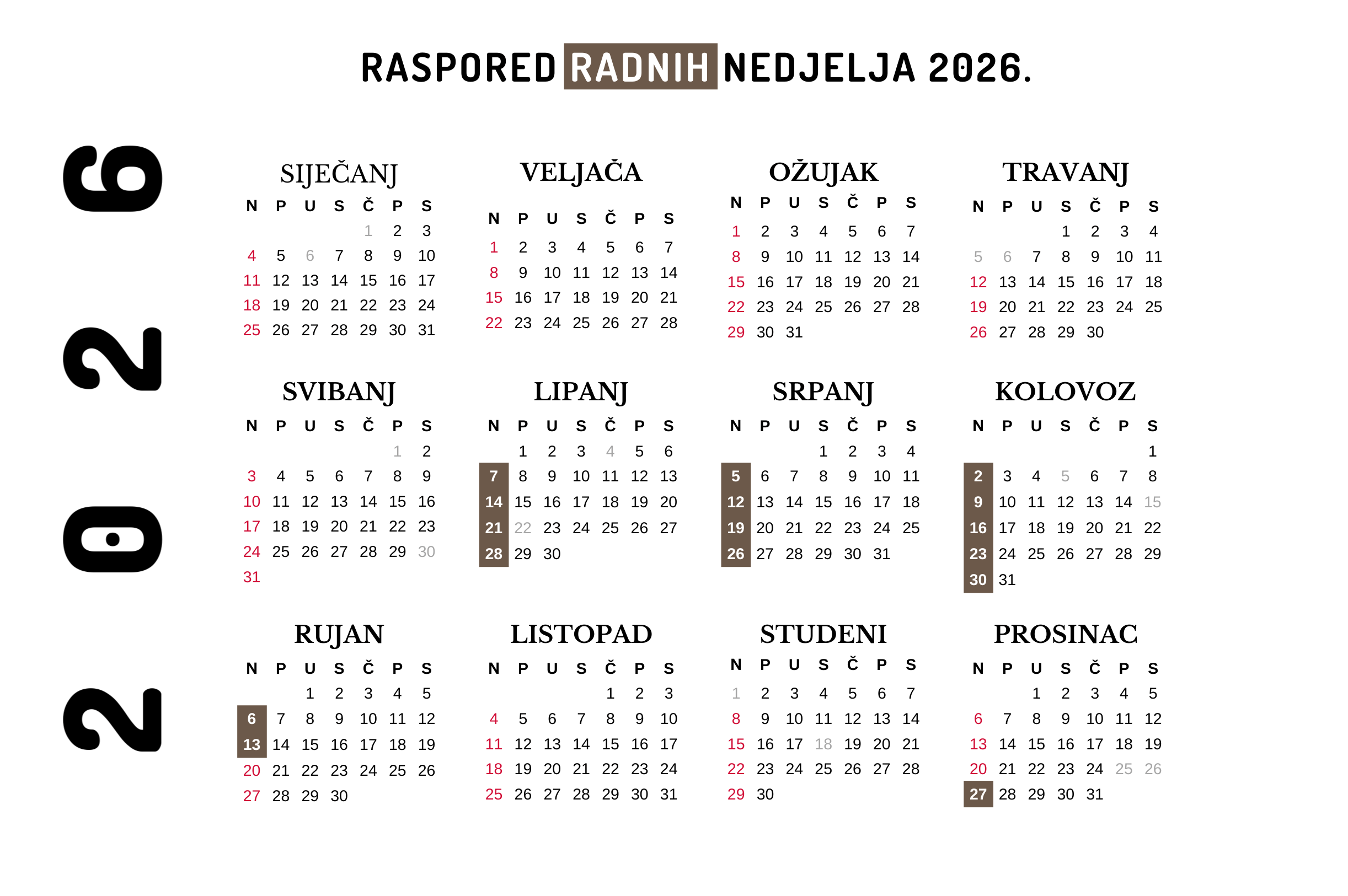 Raspored radnih nedjelja nalazi se u tablici na dnu stranice