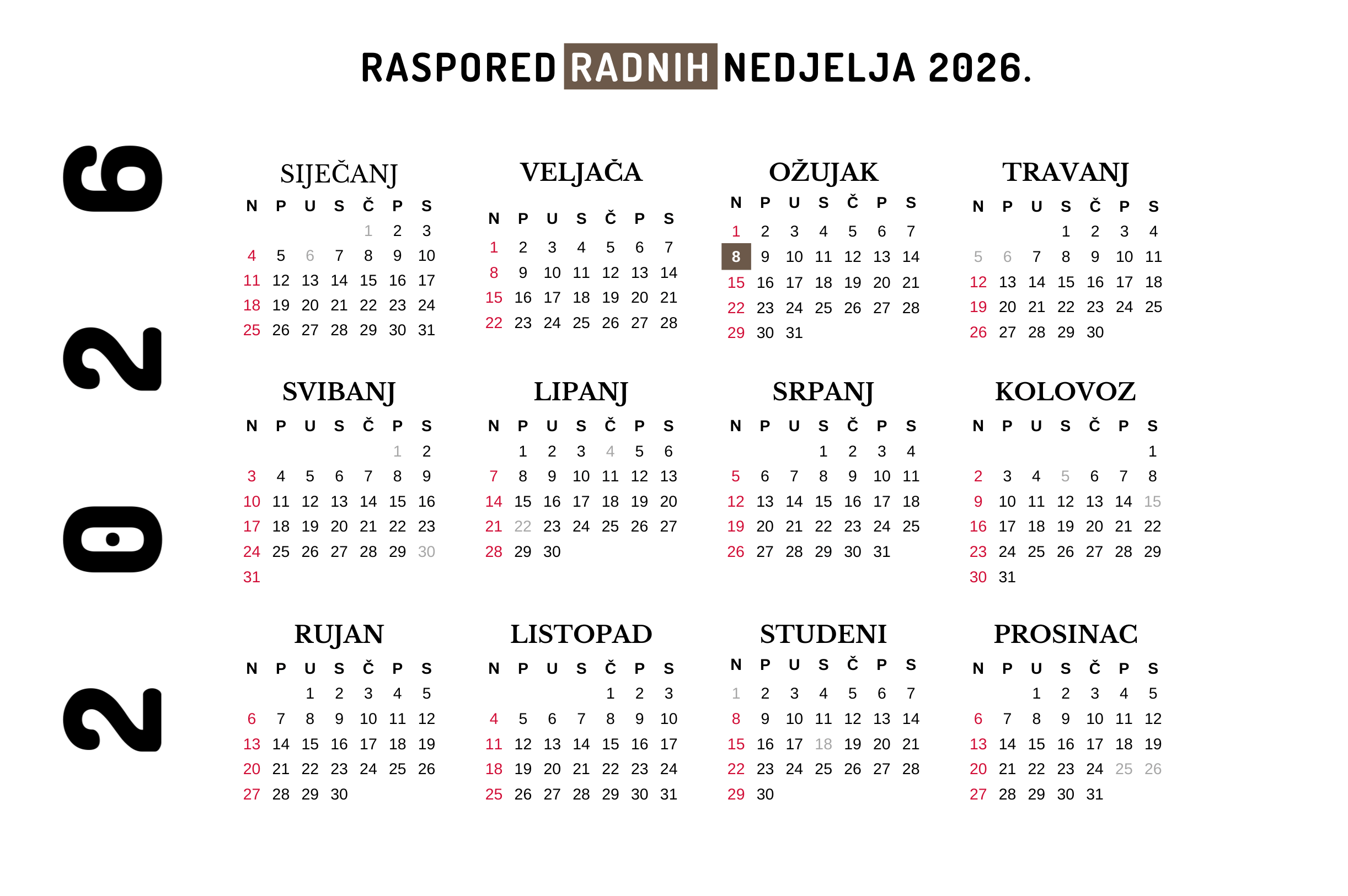 Raspored radnih nedjelja nalazi se u tablici na dnu stranice