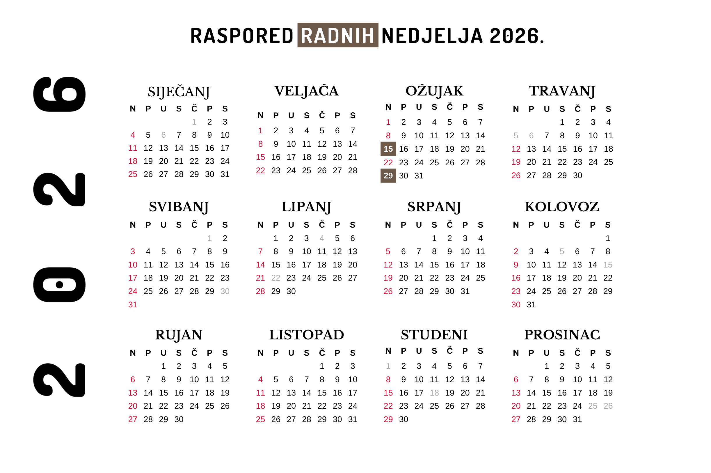 Raspored radnih nedjelja nalazi se u tablici na dnu stranice