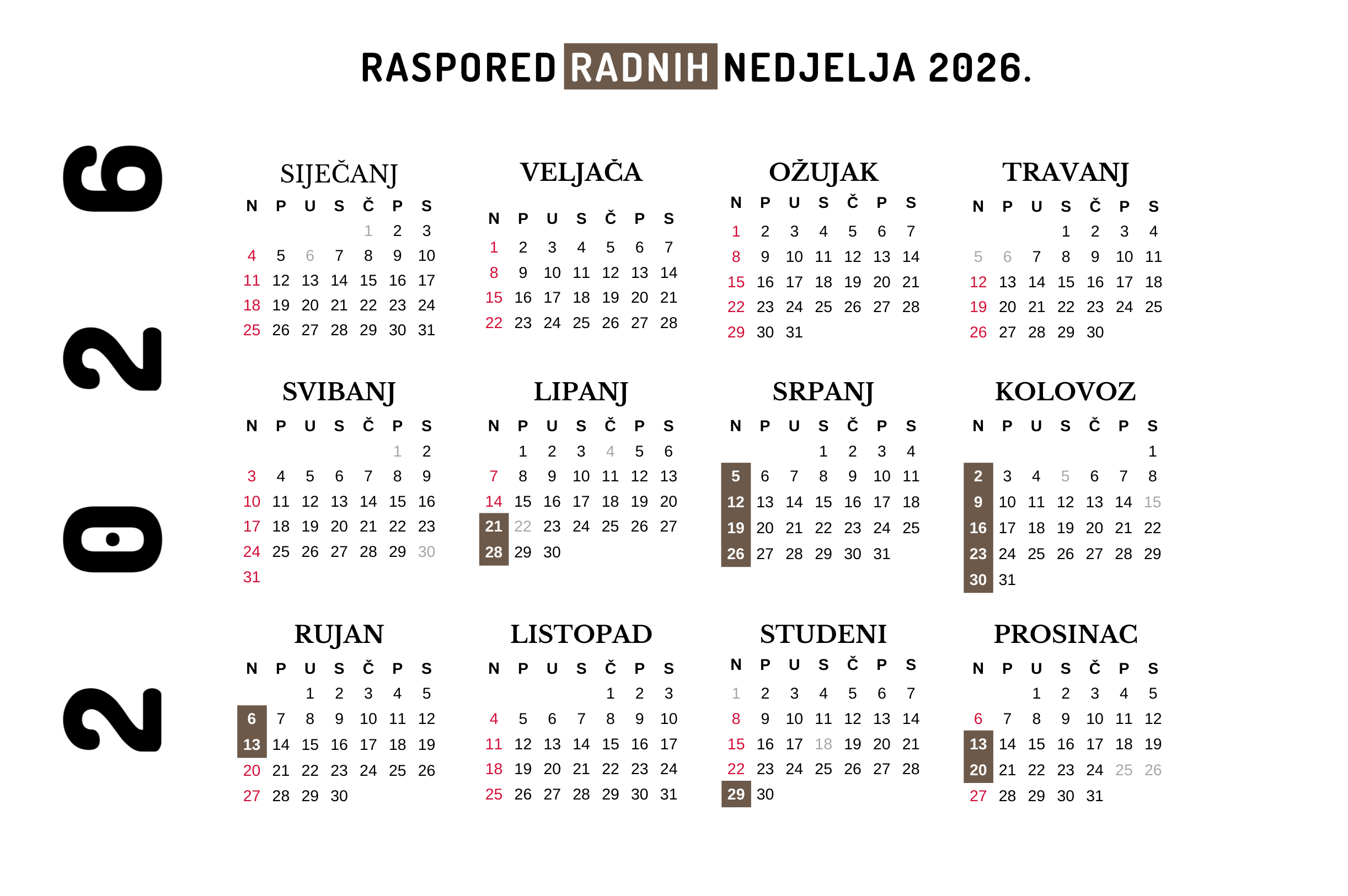 Raspored radnih nedjelja nalazi se u tablici na dnu stranice