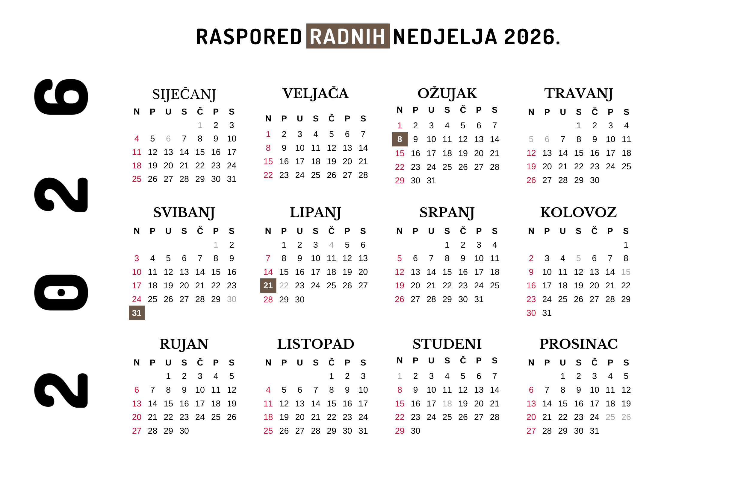 Raspored radnih nedjelja nalazi se u tablici na dnu stranice