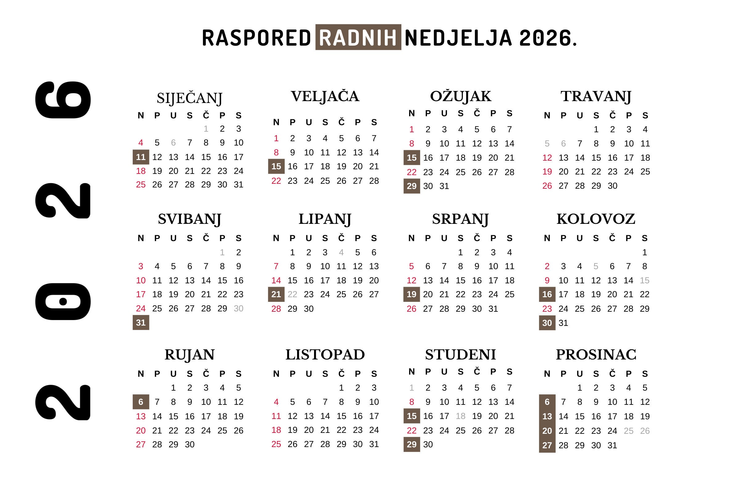 Raspored radnih nedjelja nalazi se u tablici na dnu stranice